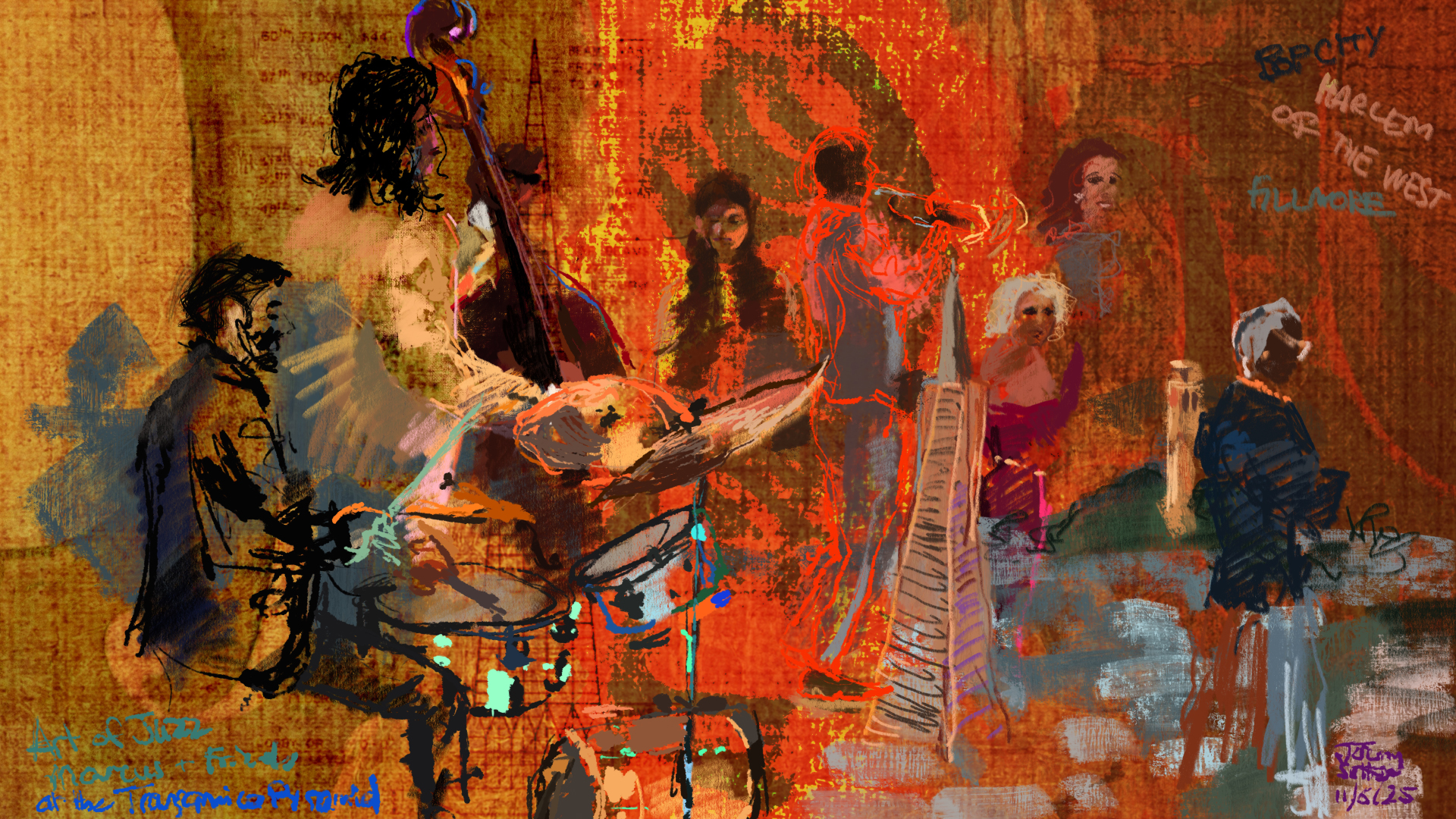 “Marcus Shelby Jazz”, acrylic on canvas, 30″ x 40″