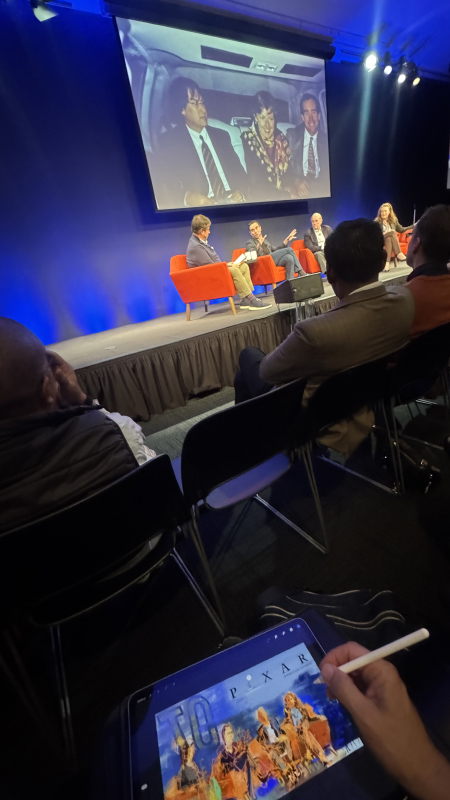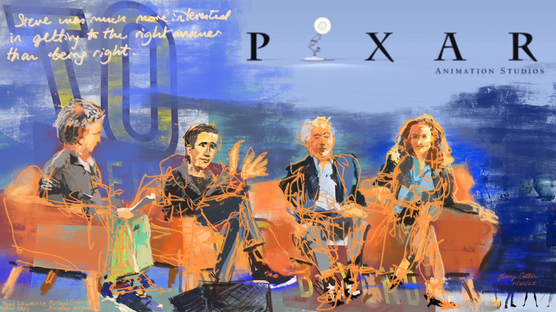 This digital sketch was created live at a fascinating panel discussion titled “To Infinity and Beyond: The Story of Pixar’s Stock Market Debut” that took place at the Computer History Museum in Mountain View, California. I used an iPad Pro, Apple Pencil and the Procreate app.