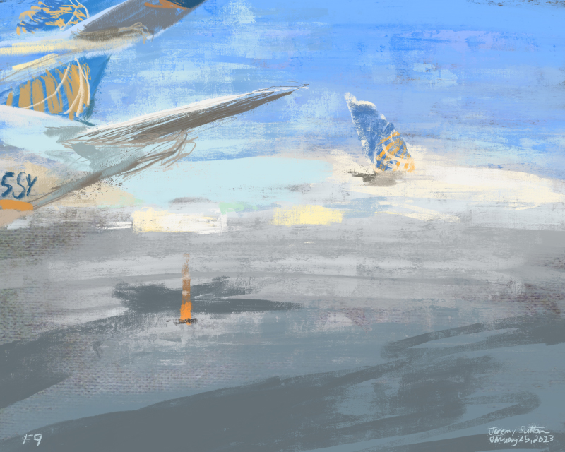 This painting was created from life in my studio. It depicts the scene as pianist Shelley Leong improvised on the piano, hence the title. In the video above you can see me painting as Shelley plays, both improvising in the moment.