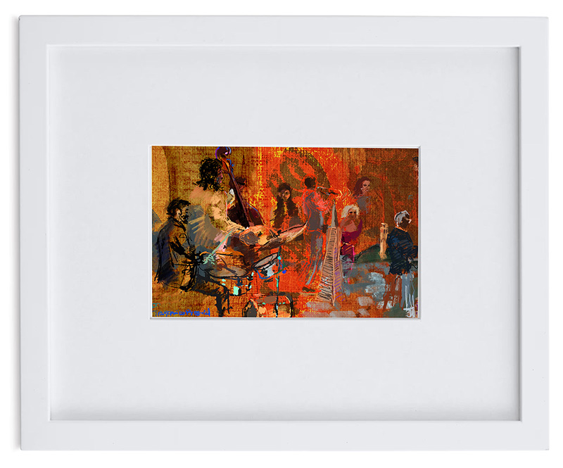 The example artwork shown here for the 4×6 and 8×10 prints, “Marcus Shelby and his Harlem of the West Players at the Transamerica Pyramid”, is available for purchase as a print. - 8″ x 10″ pigment inkjet print on glossy paper – $499