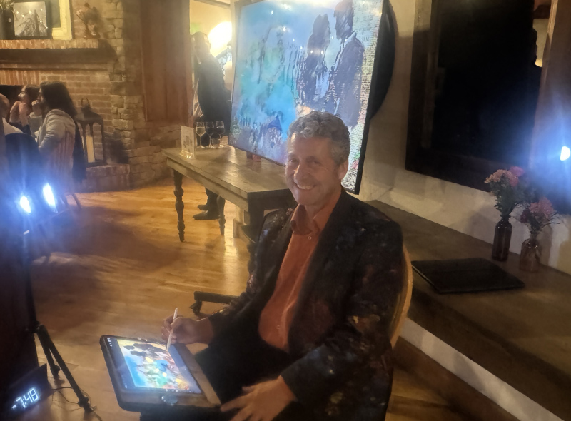 Guest pointing out his car in the painting (photo courtesy of Louis Roberts, addmustard)